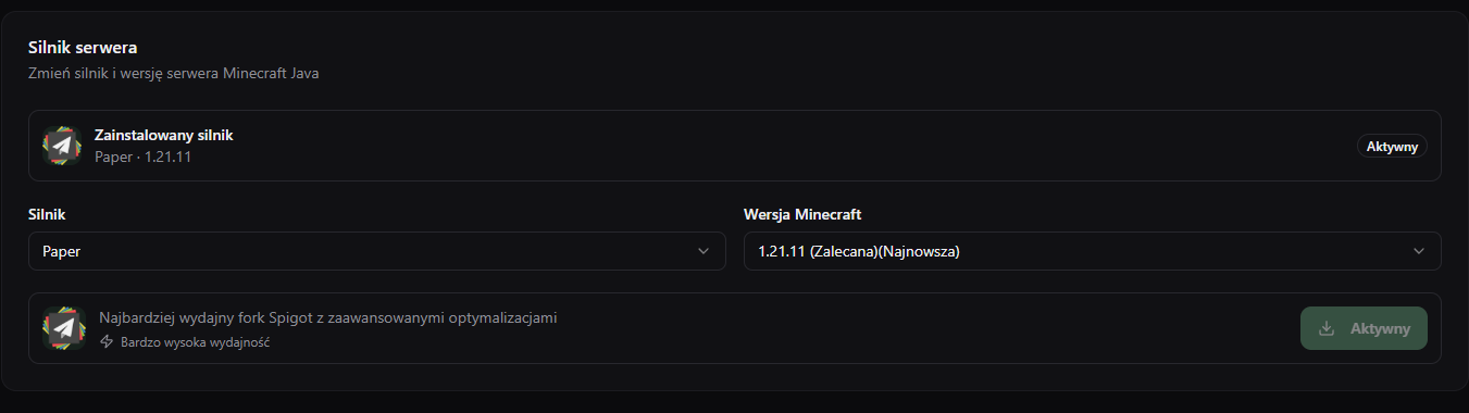 Musimy zacząć od wyboru silnika który obsługuję API Bukkit.